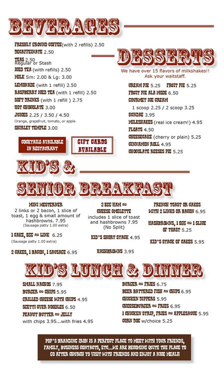 The Branding Iron Menu - This little restaurant in the old historic building on highway 90 close to the library will capture your attention.